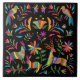 Brighten Up Your Home with this Unique "One of a Kind" Mexican Otomi Ceramic Tile! It Features a Mexican Otomi Print with Animals, Birds and Flowers in Vibrant Bright colours...on a Black Background!