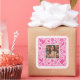 An otomi talavera frame with its intricate floral and bird motifs. The monochromatic palette lends a timeless, almost vintage feel, reminiscent of traditional porcelain designs. The use of delicate botanical illustrations enhances its sophisticated charm, creating a romantic and graceful aesthetic.