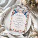 This Mexican Otomi Tenangos Colourful Floral Wedding Invitation design features a romantic and lively border with two intricately patterned hummingbirds facing each other at the top, surrounded by a rich assortment of colourful flowers, hearts, and leaves. The vivid colour palette—featuring teal, coral, navy, and soft pastels—creates a cheerful and whimsical atmosphere. The centre space remains clean and textured, offering a perfect area for invitation text or personal messages.
