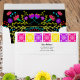 Bright and colourful Mexican fiesta themed envelope, complete with return address. Inside of this pretty envelope you will find an explosion of Mexican fiesta flowers in a multitude of colours. The back of the envelope has a bright border of floral papel picado in pink, purple and yellow along with your return address. (The template is set up ready for you to edit the sample wording to your name and address). This design also coordinates with our Quinceanera Collection which includes Mexican Flower Invitations, favours and party supplies.