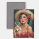 Mexican Pin-Up holding Cute Cat Magnet