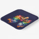 A Colourful Blue Paper Plate Designed With A Mexican Pinata Bow For Either a Taco Party Or Celebrating Cinco De Mayo