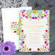 Colourful Floral Quinceanera Invitation with Real Gold Foil and Mexican Fiesta Flowers in red purple pink yellow blue and green on white,