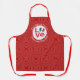 Personalised adult apron with the Mexican LOVE FLAG. The word LOVE, using a heart shaped flag as the O, is featured in red letters inside a white, fractal circle of squiggly squares. The circle sits on a red, fractal background, also, of squiggly squares. Great for grown ups at your next occasion or party to celebrate Mexico. Can be personalised for any occasion, such as Cinco de Mayo or Valentine's Day.