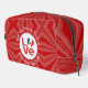 Personalised dopp kit featuring the green, white, and red Flag of Mexico in a heart shape makes the O in the red lettered word LOVE. Below it reads VALENTINE'S DAY 20??. You can customise it to say anything you like. Perhaps, CINCO DE MAYO 2024 or Christmas 2025? Above, a spot for your family name or any name you wish for added personalisation. The word LOVE sits in the centre of a digital art created white, fractal circle of squiggly squares. The whole design has a red background of squiggly squares. Can be lovely for a Mexican family reunion or a Christmas stocking stuffer.