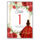 Mexican Red Roses Princess Quinceanera Butterfly Table Number