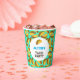 Fun tacos patterned birthday party paper cups, with customisable text where you can add your own name and message