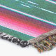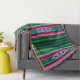A quality printed throw has its advantages. This is a much finer weave throw than its loopier cousins, and though lighter, it is worth the investment for custom room accessorizing. The back is much prettier than the typical brown, and the fringe on the long sides very vivid, the selvage nicely done. Before photographing, I washed the throw in cold water, delicate, with a thicker woven throw the same size. On tumble dry low, this throw was dry in half the time as the other. This is a very practical quality if you use throws for furniture covers or to wrap up in frequently. The sleekness of the fabric makes it a great layer for accenting or protecting without the feeling of sitting on too much stuff. Perfect for napping or when you feel a light chill coming on. The color printing is beautiful and on this fabric, matched the design and color of my Photoshop image. This is an advantage for blending room fabrics and colors. The fringe on the short sides prints the colors from the design image and therefore varies from the side fringe. I streaked a white fractal line through the plaid pattern to give the illusion of weaving. This printed as crisp as an illusory thread, and put some white in the short side fringe, showing another advantage of print vs loomed- for artistic purposes, line lines, detail, and color integrity can be planned and preserved. My loomed throws have color limitations and more of a needlepoint texture. Print throws reproduce an exact image. The throw felt a little stiff straight out of the package, but this went away in the first delicate wash. Of course I searched the wash water for ink or bleeding and there was none.