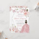 Mexican Silver Pink Floral Princess Quinceañera Invitation