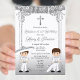 Mexican Silver Twin Boy Baptism and Birthday Invitation