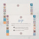 This Mexican Talavera Colourful Floral Fiesta Wedding RSVP Card design features vibrant, symmetrical borders inspired by traditional Talavera patterns, with intricate geometric motifs running down both sides. The colour palette incorporates classic Talavera hues like cobalt blue, orange, and turquoise, echoing the ceramic artistry of Puebla, Mexico. The central space is framed by colourful tile designs, providing a striking yet balanced backdrop, perfect for a Mexican-themed celebration.