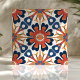 Mexican Talavera Floral Medallion Cobalt Orange Tile