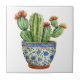 Mexican Talavera Hacienda Style Cactus Tile White