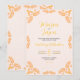 This Mexican Talavera Yellow Floral Minimalist Wedding Invitation design features a minimalist approach with delicate, symmetrical orange yellow motifs placed in each corner and along the edges. The small, leaf-like shapes create a sense of movement while maintaining an airy, open space in the center, allowing for ample text placement. The simplicity and elegance of the pattern evoke traditional Talavera tiles, giving the design a classic Mexican artisanal feel.