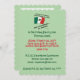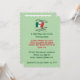 Birthday party invitation with the Mexican flag and the words THE BLOOD OF MEXICO FLOWS THROUGH MY VEINS AND SOMETIMES ITS TEQUILA. Background is light green. Party details on the front can be personalised. Back is blank for your special message, direction, or whatever you wish.
