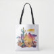 Abstract illustration of Mexican watercolor desert sunset with cacti plant, grass and mountain view