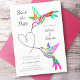 The card features a delightful design inspired by traditional hummingbird folk art drawings. Two whimsical hummingbirds in pink, blue, and green hues come together to form a heart, symbolising the union of two hearts in love. Against a soft and understated white backdrop, the script and serif typography add an elegant touch to the overall design.