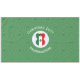 Personalised tablecloth has a horizontal angel wearing the flag of Mexico for holiday gift decorating or Christmas decor. The Mexican Flag Christmas angel is found inside a white, fractal circle of squiggly squares. The background is a green fractal squiggly squares. Add your own text or personalise with a name and the year.