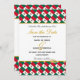 Elegant SAVE THE DATE invitation with the outline of the flag of MEXICO in a tiled pattern and gold trim. Message reads 'And the Two shall become One'. Design can be fully customised with your own message and for your own special celebrations, eg. birthdays, independence days, heritage days, family get-togethers, etc. Matching stationery available. Be proud of your heritage on your special Day.