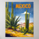 Restored and digitally enhanced vintage travel poster showing a cactus with a Mexican village in the background. Imperfections removed and colours corrected. Image courtesy of Library of Congress.