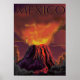 Mexico Volcano Vintage Travel Poster. Erupting Volcano From Mexico. Vintage or Classic Volcano illustration.