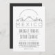 A unique wedding invitation for a marriage taking place in the beautiful country of Mexico. This invitation features a stylised illustration of the city's unique skyline with its name underneath. This is followed by your wedding day information in a matching open lined style. On the reverse side of the invitation is a deep grey colour to complement the look and feel. All individual elements of the invite card are unlocked so feel free to change or add any details necessary by using the customisation function. You can add a photo to the reverse side and add a black and white filter to it. Matching RSVP cards, belly bands, tote bags, and more are available.