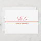 An invitation for a MFA graduation party. This minimalist invitation is red and white. All the words and both colours can be customised.