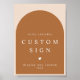 This custom editable sign features a burnt orange and beige colouring paired with a modern minimalist layout and simple bohemian arch. It's the perfect sign for your bohemian desert or rustic earth tone event.