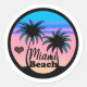 Miami Beach Blue and Pink Palm Trees Classic Round Sticker
