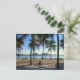 This Miami postcard features a serene evening sunset over a beautiful beach with palm trees and clear blue skies.