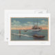 Miami, FL - Water Skiing Scene, Wooden Boat Postcard