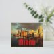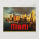 This dramatic scene offers the Miami, FL skyline at night with a vintage postcard look.
