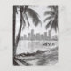 This travel postcard, in hand drawn sketch-style, showcases the cityscape of Miami.