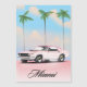 Miami Pink Sunset travel poster featuring a retro american muscle car against an evening sunset.