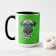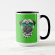 This design features a portrait of pug in with sunglasses and a black and white chequered scarf.