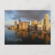 View of Miami skyline, reflection and cloudy sky as sunsets.