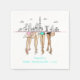 Bring Miami beach vibes to your bachelorette party with this chic cocktail napkin featuring a modern Miami skyline and four stylish ladies in cute bathing suits from the waist down. One holds a straw hat with “Bride to Be” for the perfect spotlight moment.
