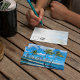 This postcard features a watercolor portrait of Miami South Beach in Florida.