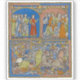 A mediaeval illustration from The Crusader Bible, also known as the Morgan Picture Bible, that dates from the 13th Century. The French Gothic manuscript depicts scenes from the Old Testament. In the scene on top, David is offered the hand of Michal, King Saul's daughter. The bottom scene is David fighting the Philistines to win Michal's hand. Great gift for someone interested in the history and art of the middle ages.