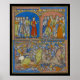 A mediaeval illustration from The Crusader Bible, also known as the Morgan Picture Bible, that dates from the 13th Century. The French Gothic manuscript depicts scenes from the Old Testament. In the scene on top, David is offered the hand of Michal, King Saul's daughter. The bottom scene is David fighting the Philistines to win Michal's hand. Great gift for someone interested in the history and art of the middle ages.