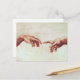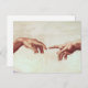 Michelangelo Hands postcard. Fresco Sistine Chapel. One of the most iconic scenes in Western art. This detail from Michelangelo’s creation of Adam shows God reaching down to touch fingers with his creation. The work is charged with religious and cultural import and stands as one of the most recognised images in the world. A great gift for fans of Michelangelo, the Sistine Chapel, Renaissance Art, and religious painting.