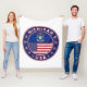 Badge of Michigan with flag of Michigan and flag of USA colours, rounded shape.