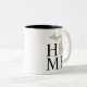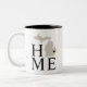 Stylish custom coffee mug features a typography design with "Home" text and Michigan state map. Click the Customise option to move the black heart city marker on both sides of the mug. You can position it directly over the city where you live or your hometown. Neutral black, beige, and white colours.
