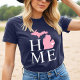 Stylish shirt design features a typography design with "Home" text and Michigan state map. The heart city marker can be positioned over the city where you live via Customise. Girly navy blue, pink, and white colours.