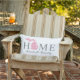 Stylish welcome pillow features "Home" text with Michigan state map and custom text that can be personalised with your family name and the city, state where you live. The heart city marker can be moved to the appropriate location via Customised. Horizontal stripes dress up the reverse side. Grey, pink, and white colours.