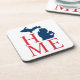 Stylish beverage drink coaster features a typography design with "Home" text and Michigan state map. The white heart city marker can be positioned over the city where you live via Customise. Patriotic red, white, and blue colours,