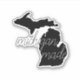 Michigan Made Typography With Black Silhouette. The state of Michigan in a black silhouette with cursive typography "Michigan Made". Design from the Michigander.