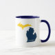 Go Blue! Show off your U of M and/or Ann Arbor pride with this maize (upper peninsula) and blue (lower peninsula)-coloured mug with "Michigan" written along the bottom of the "mitten." Visit our shop's "Michigan" collection for more products and colour options!