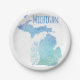 Colourful patterned map of the US State Michigan in a woodcut grunge style