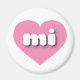 This magnet features a cool pink heart containing the bold, white, rounded lower case letters mi, a playful abbreviation for Michigan, the great lakes state.